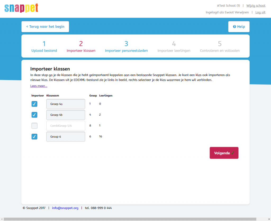 In deze stap importeer je de klassen uit je EDEXML bestand. Vink alle klassen die je wilt importeren aan en klik op volgende.