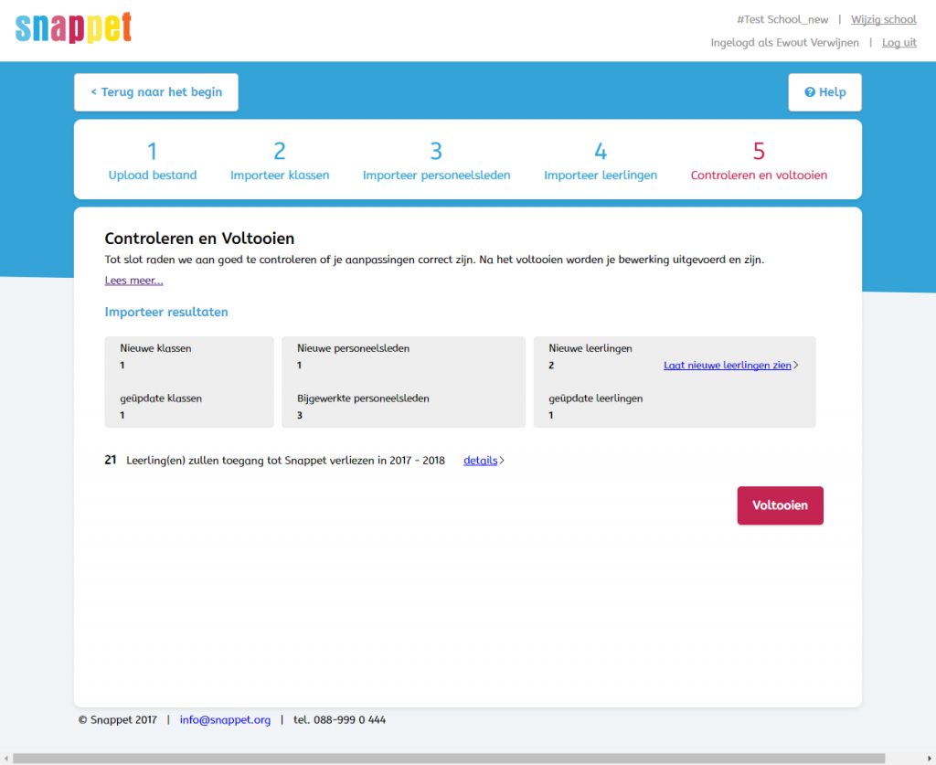 1. Controleer of de import geslaagd is en klik op de link ‘Laat nieuwe leerlingen zien’. Je ziet hier een lijst met de leerlingen die voor het eerst met Snappet gaan werken.