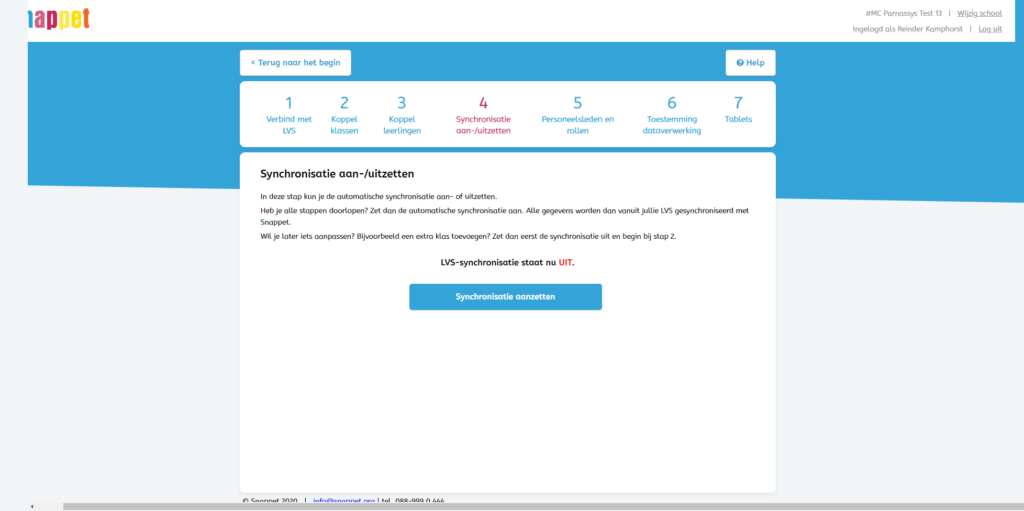 In deze stap kun je de automatische synchronisatie aan- of uitzetten. Heb je alle stappen doorlopen? Zet dan de automatische synchronisatie aan. Alle gegevens worden dan vanuit jullie LVS gesynchroniseerd met Snappet. Vanaf nu worden alle wijzigingen die je in het LVS doet, ook automatisch doorgevoerd in Snappet.