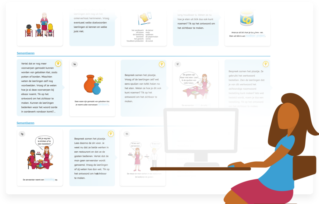 De vernieuwde lessen voor taalbeschouwing sluiten aan op de aanbodsdoelen van SLO en de recent vernieuwde leerlijn begrippen voor taalbeschouwing (SLO, 2021). De lesopbouw en jaarplanning zijn gewoon hetzelfde gebleven.